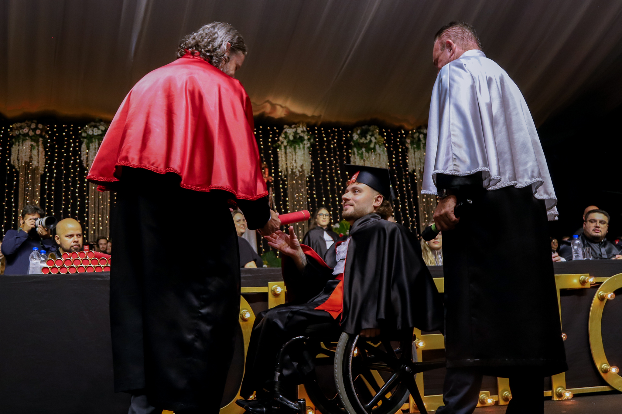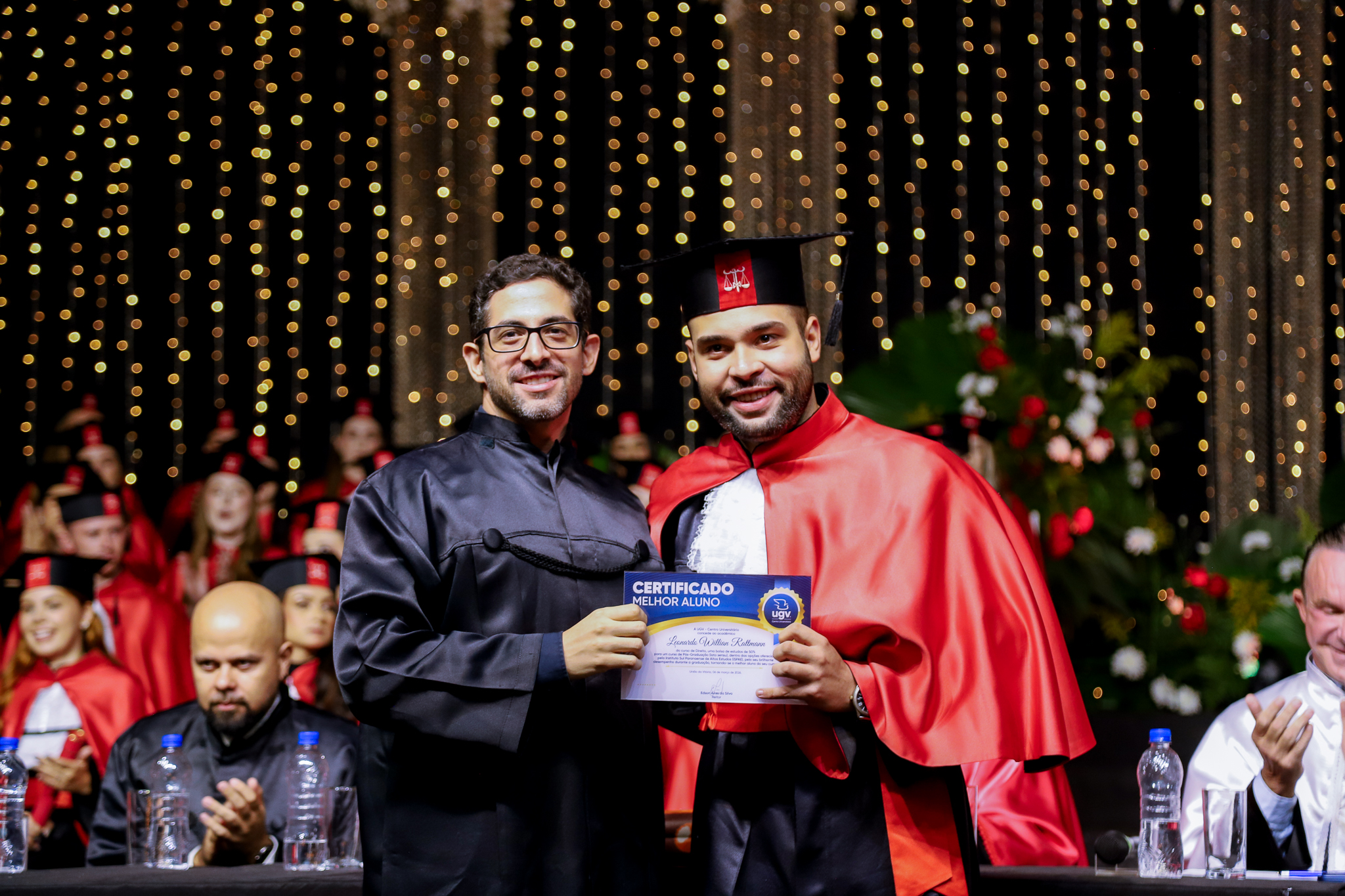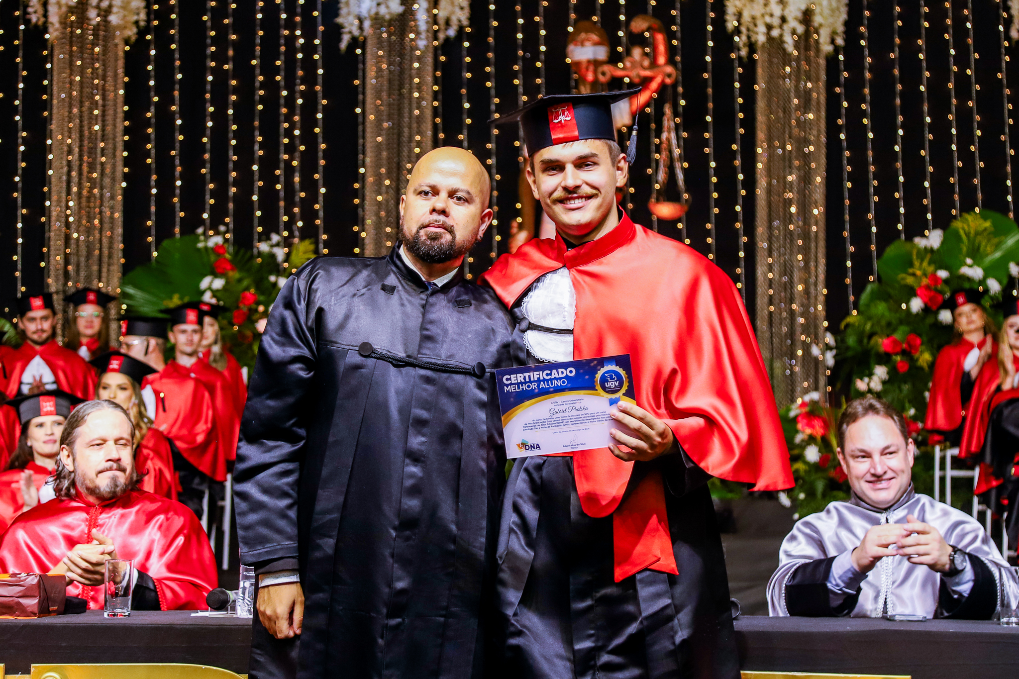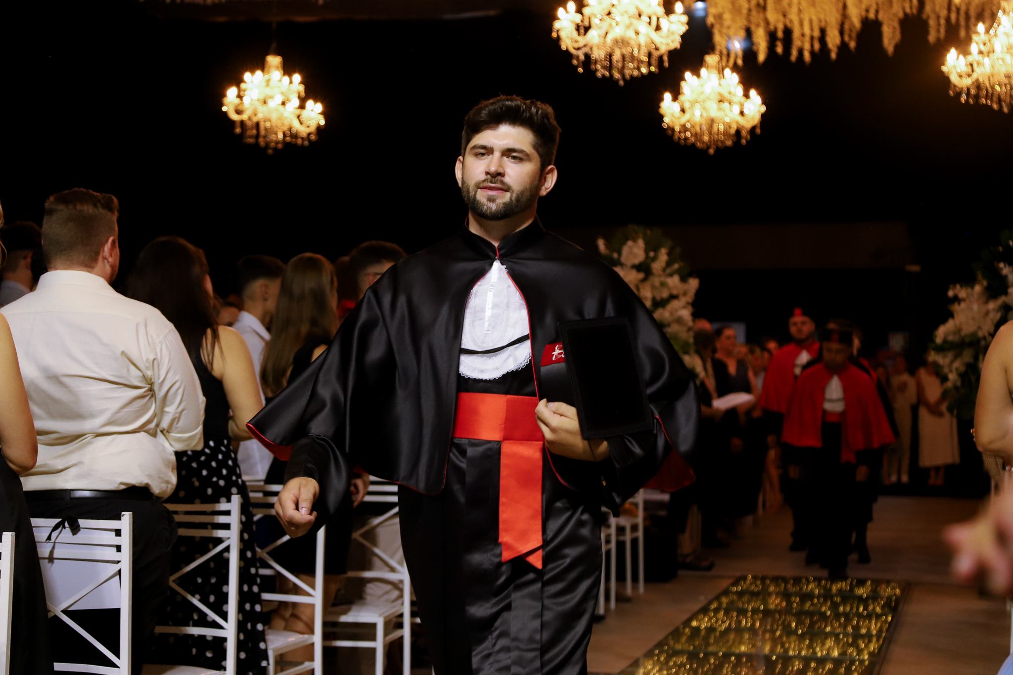Durante a solenidade, o bacharel Leonardo Willian Rattmann foi reconhecido como melhor aluno da turma, recebendo uma bolsa de estudos parcial para pós-graduação (lato sensu) em reconhecimento ao seu desempenho acadêmico.