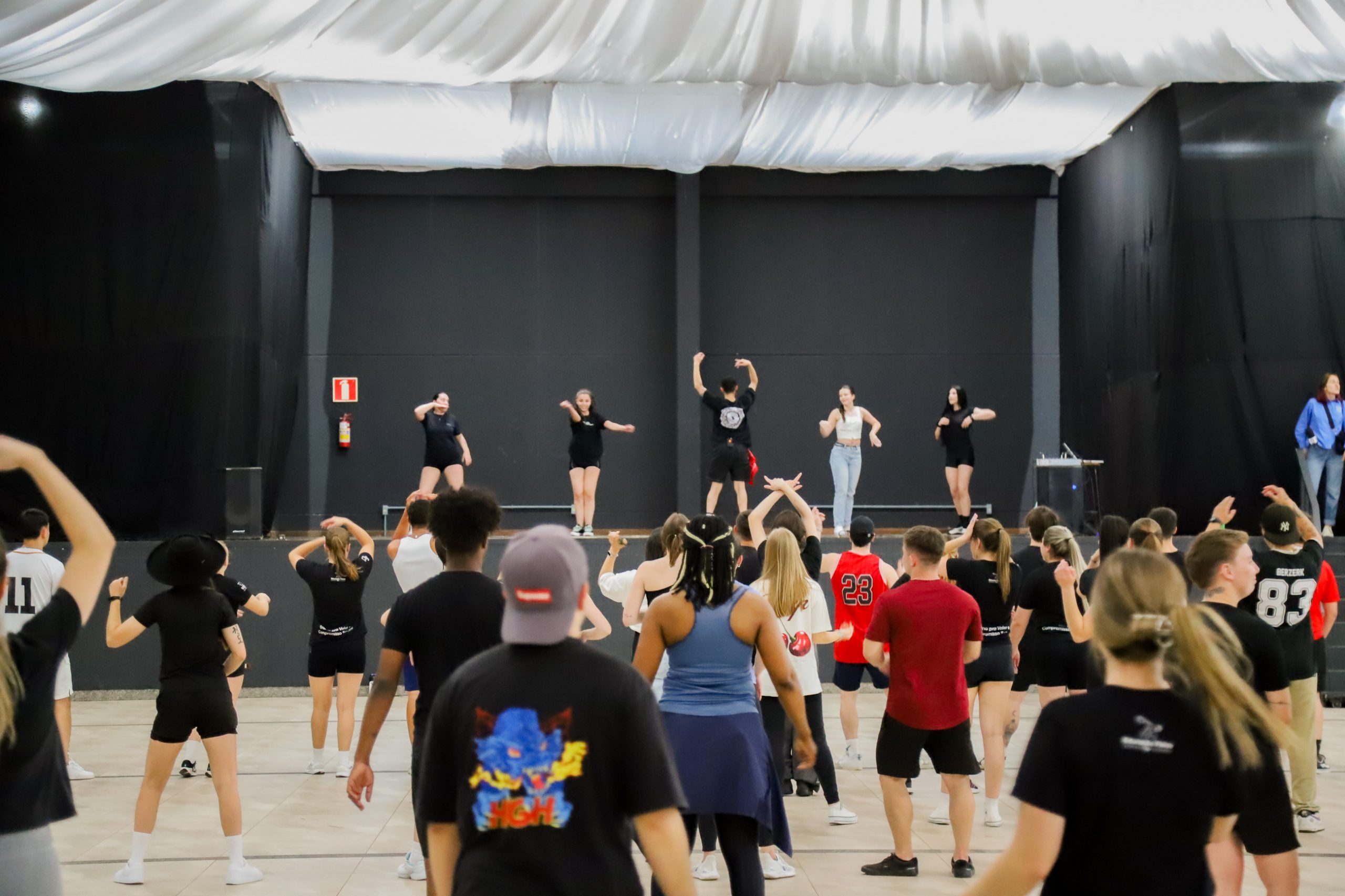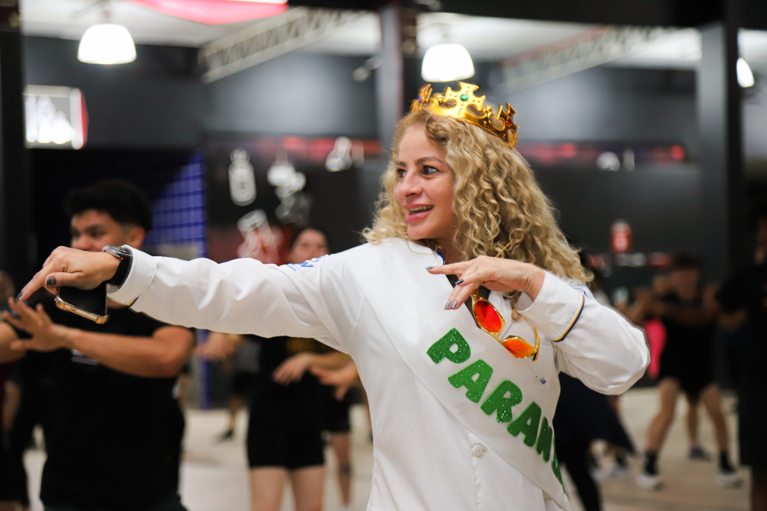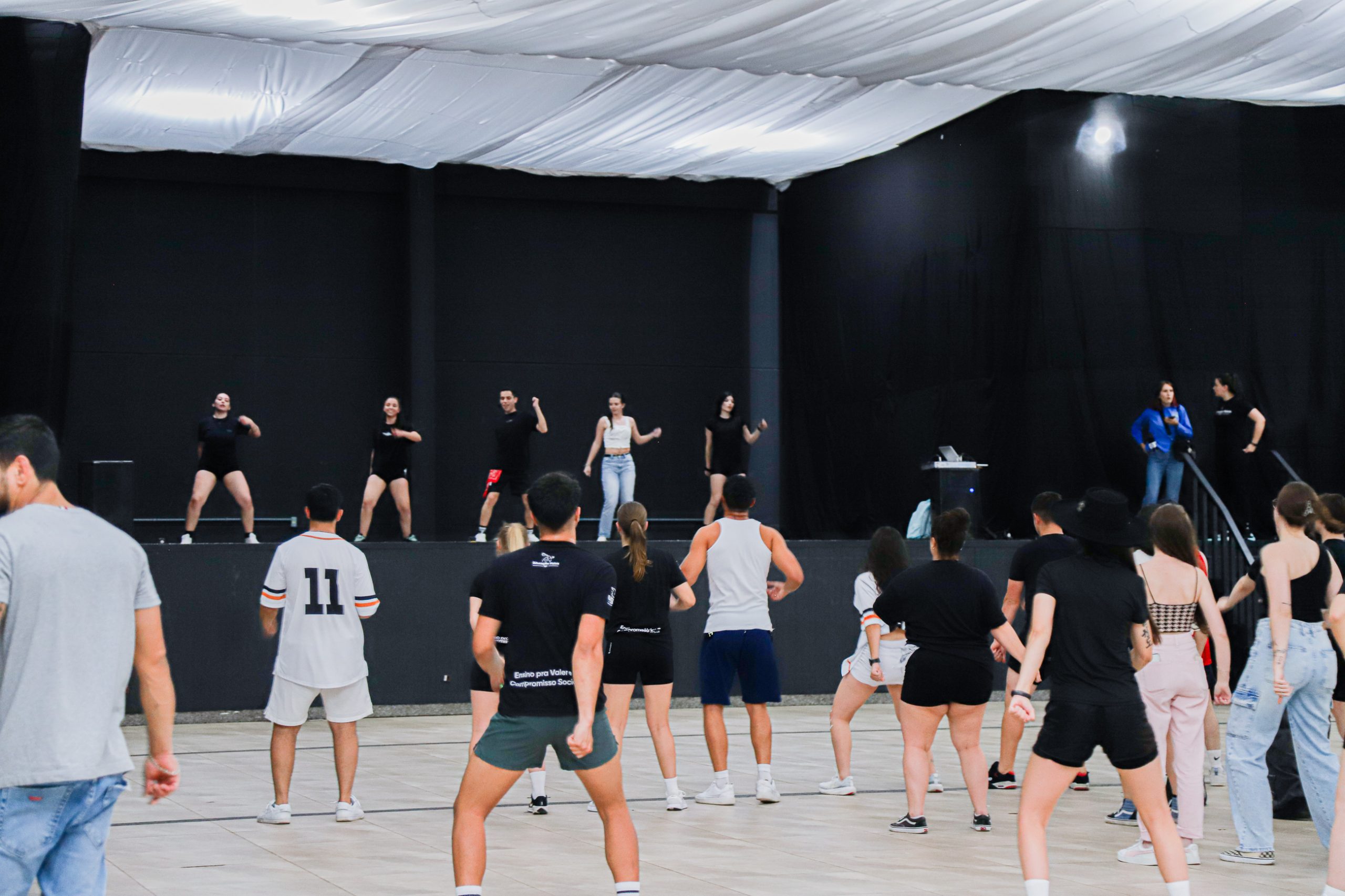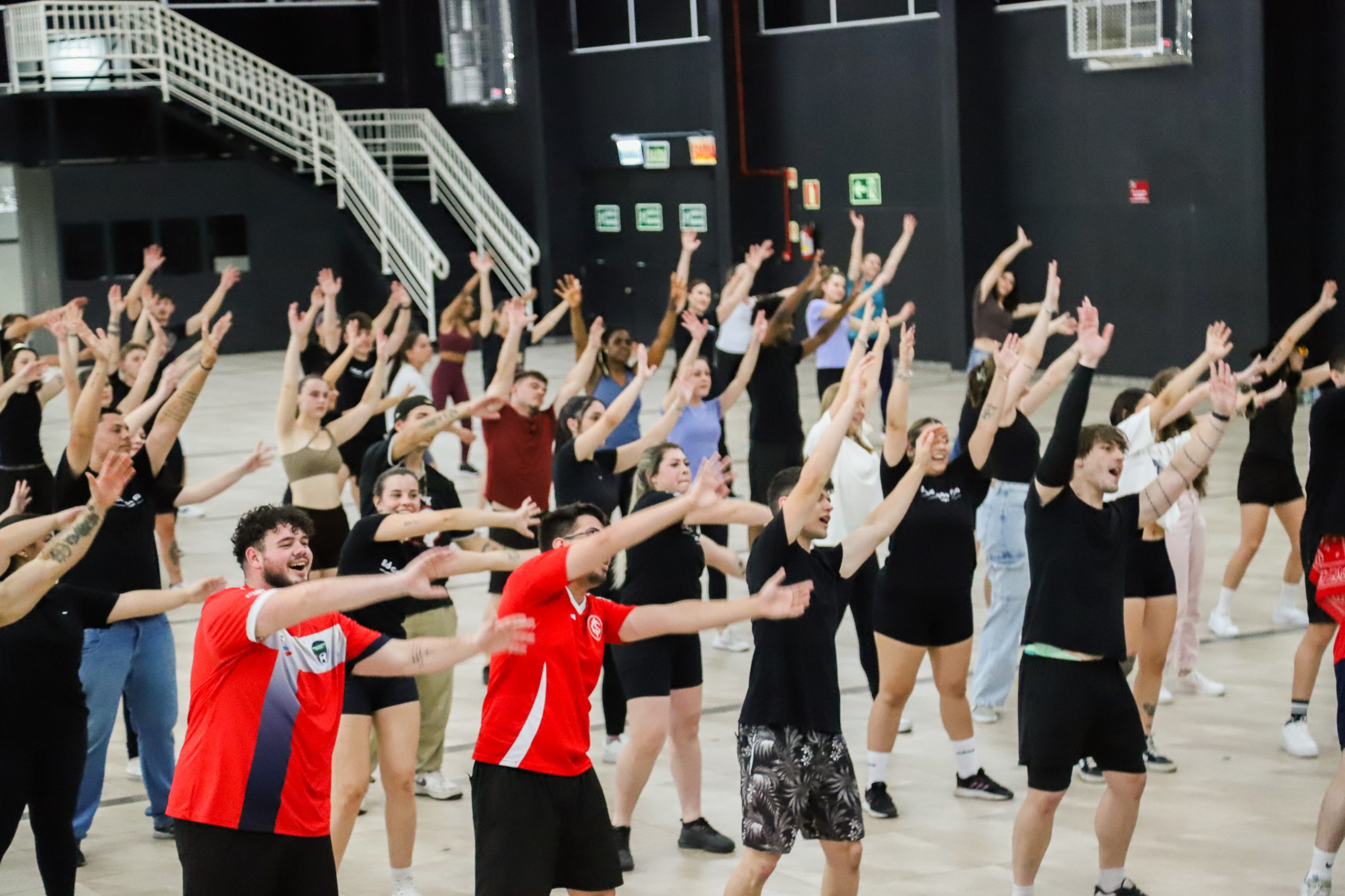 Realizado no dia 5 de novembro, o 4º Aulão de Ginástica de Academia reuniu cerca de 90 participantes, entre acadêmicos e convidados, em uma animada atividade de dança na UGV. Conduzido com entusiasmo pelos alunos do 6º período de Educação Física, sob a orientação da professora Mayara Quelho, o evento foi recheado de descontração, integração e muito ritmo.