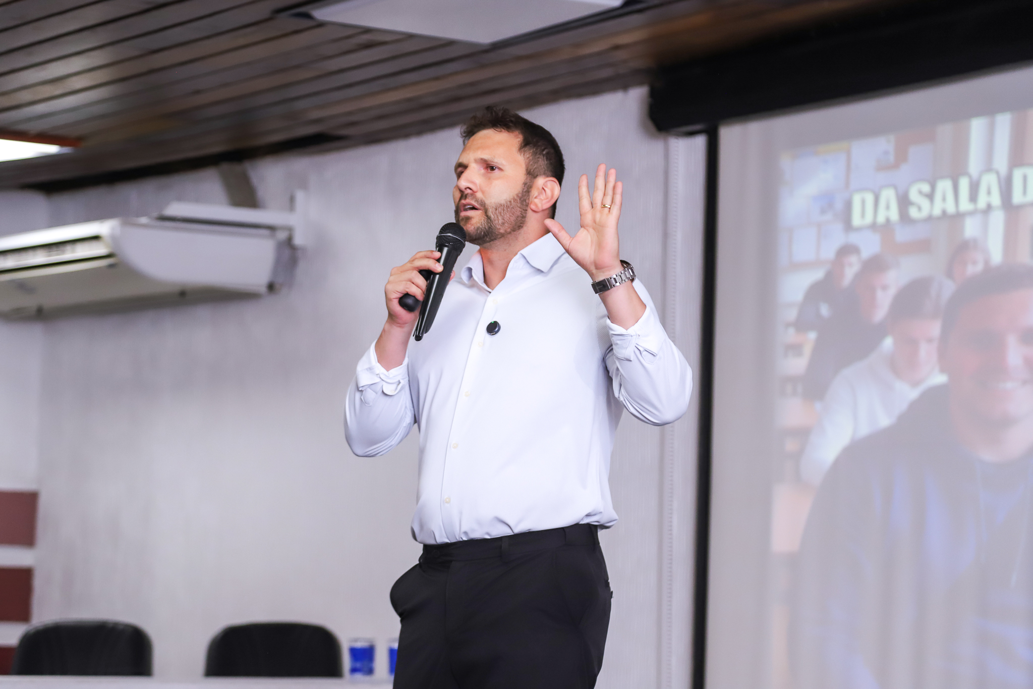 Na sequência, os acadêmicos acompanharam a palestra de Roberson Alvarenga, CEO da Help Multas, com o tema “Da sala de aula à construção de uma rede de franquias”. Durante sua apresentação, o convidado compartilhou sua trajetória empreendedora, destacando os desafios enfrentados ao longo do caminho e os aprendizados que o levaram à consolidação de uma rede de franquias de sucesso, inspirando os estudantes a transformarem conhecimento em oportunidades reais de negócio.