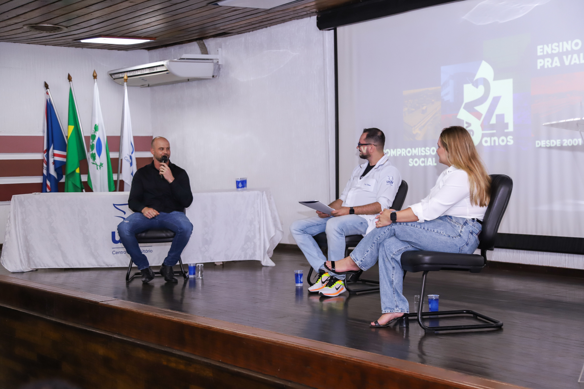 O primeiro momento do evento contou com um bate-papo com Joe Basquera, administrador, açougueiro premiado e proprietário da Casa de Carnes Joe, e Larissa Altmann, bancária e administradora. A conversa foi mediada pelo professor Robson Boiarski e trouxe reflexões valiosas sobre mercado, carreira, empreendedorismo e os desafios da profissão. Um diferencial importante desse encontro foi o fato de que ambos os convidados são egressos do curso de Administração da UGV, evidenciando, na prática, a qualidade da formação oferecida pela instituição.