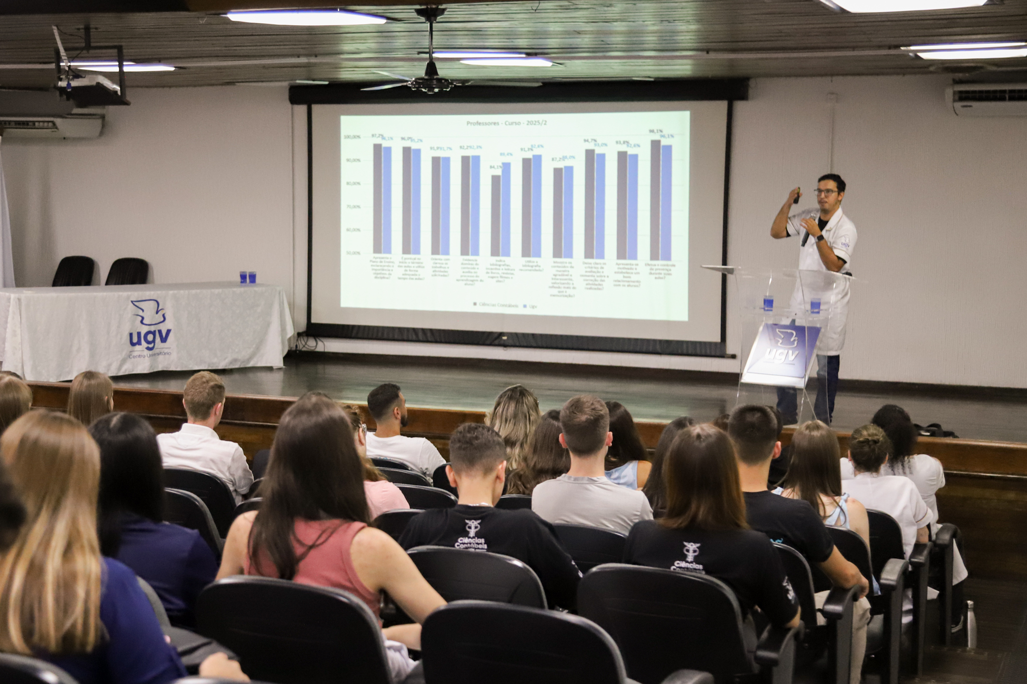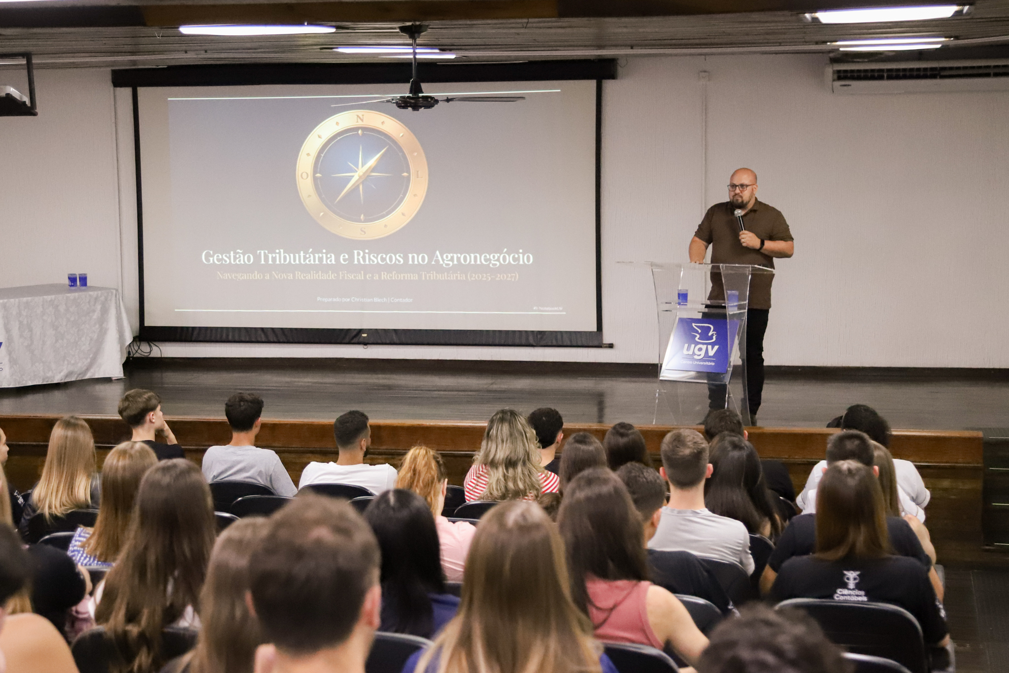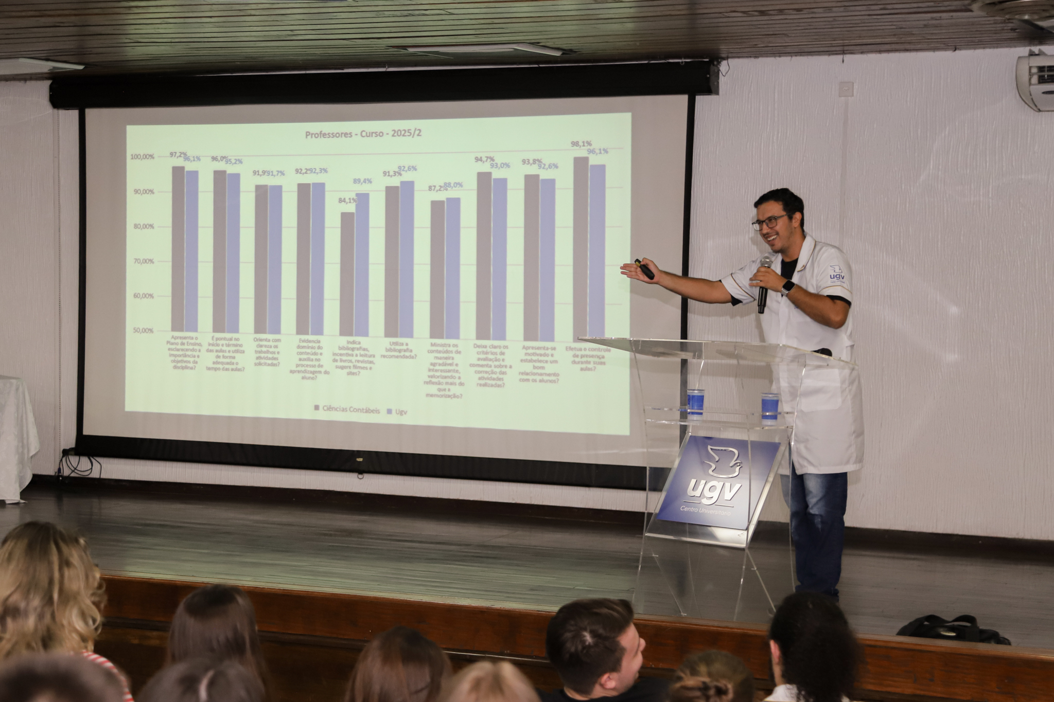 Nesta terça-feira, dia 24 de fevereiro, acadêmicos e membros da comunidade externa participaram da Aula Inaugural do curso de Ciências Contábeis da UGV, em uma noite marcada por aprendizado, troca de experiências e aproximação com o mercado profissional. O evento teve uma abordagem voltada à prática e às demandas atuais da área contábil.
