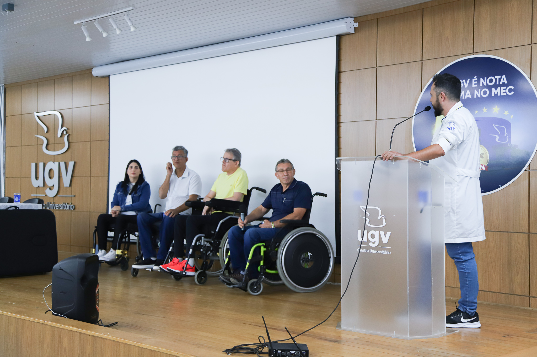 Outro momento marcante da noite foi a realização de uma roda de conversa com pacientes cadeirantes, que compartilharam suas histórias de vida, desafios e experiências no processo de reabilitação. O espaço proporcionou aos acadêmicos uma escuta atenta e sensível, permitindo compreender, para além das condições clínicas, as vivências, conquistas e perspectivas desses pacientes.