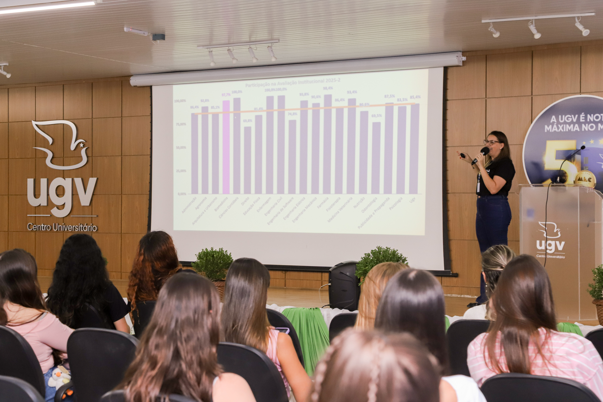 Na ocasião, a coordenadora do curso, professora Elaine Ferreira, também apresentou os dados da Avaliação Institucional referentes ao segundo semestre de 2025, conduzida pela Comissão Própria de Avaliação (CPA), reforçando a relevância da participação dos acadêmicos nesse processo.