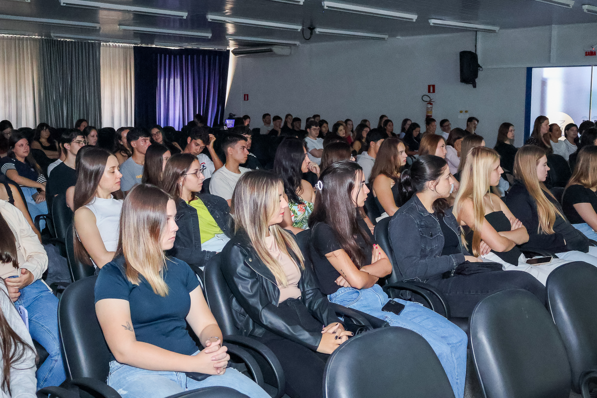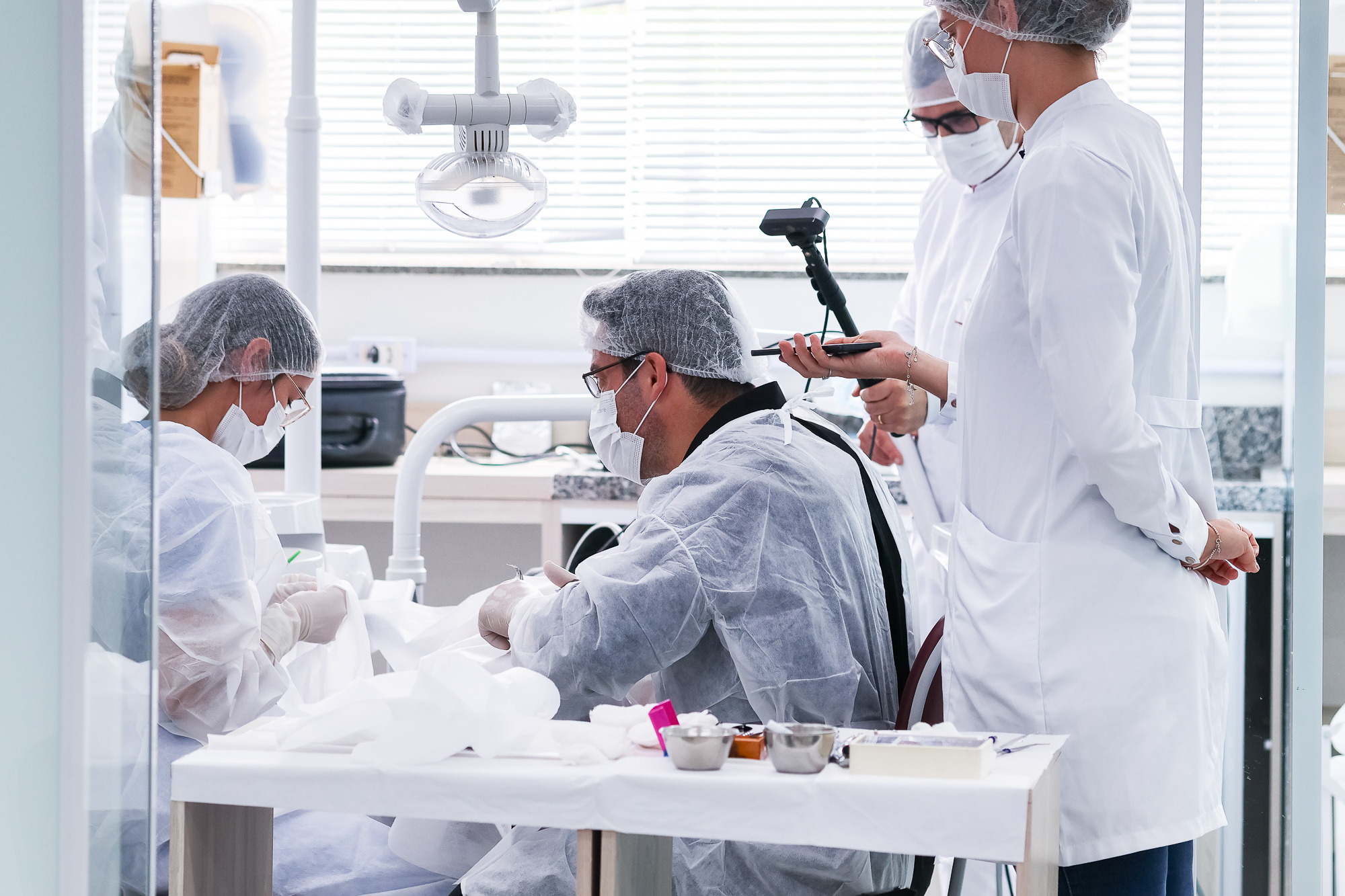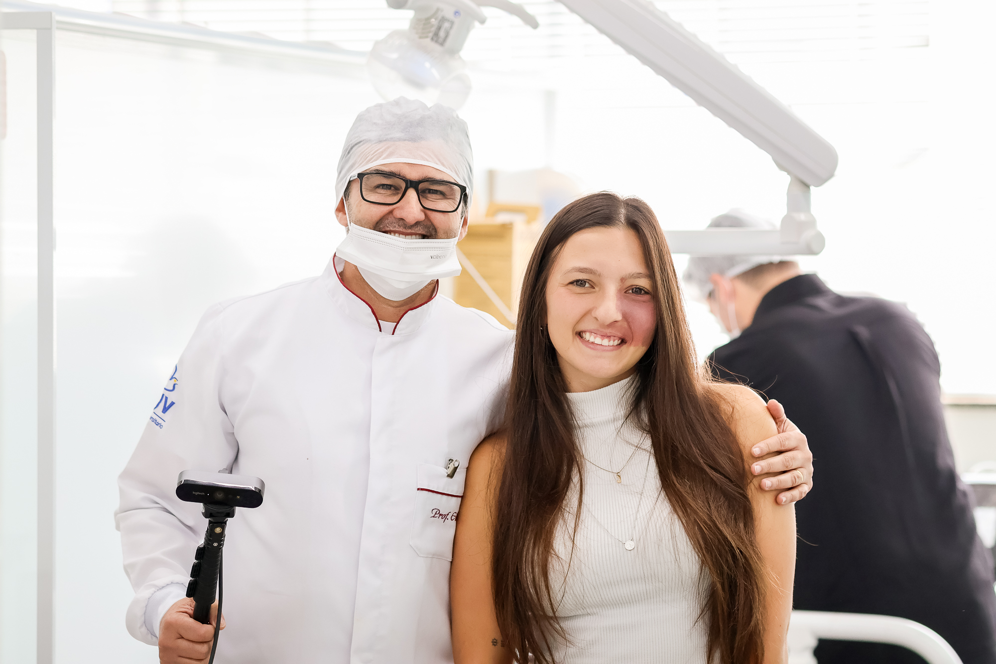 Um dos momentos mais marcantes da Aula Magna foi a realização de uma cirurgia demonstrativa ao vivo, com transmissão em tempo real da clínica para o auditório. A atividade permitiu aos estudantes acompanhar, na prática, cada etapa do procedimento, tornando o aprendizado mais dinâmico e imersivo.