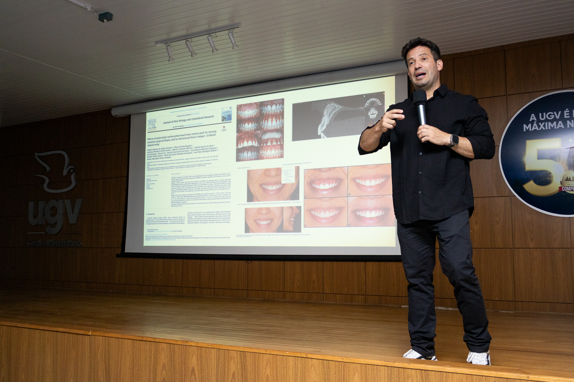 Com o tema “Cirurgia Periodontal e Labial Guiada para Tratamento de Sorriso Gengival”, a palestra abordou técnicas e abordagens voltadas à estética e funcionalidade do sorriso, destacando avanços nos procedimentos e a atuação do cirurgião-dentista nesse contexto.