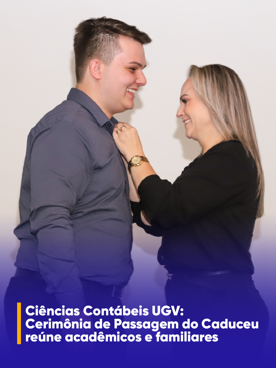 Os acadêmicos do 7º período do curso de Ciências Contábeis da UGV – Centro Universitário participaram na segunda-feira, 09 de março, no auditório da instituição, da Cerimônia de Passagem do Caduceu, um momento simbólico que marca uma nova etapa na trajetória acadêmica dos futuros contadores. A iniciativa foi inédita no curso e na própria instituição, integrando também as ações comemorativas pelos 25 anos da UGV.