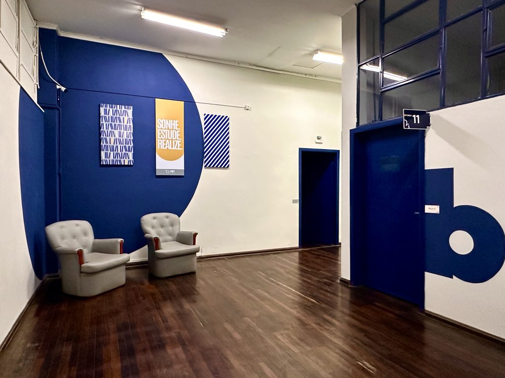 O hall do Bloco B do edifício Sede teve seu espaço revitalizado, se tornando mais moderno e acolhedor para a comunidade acadêmica.