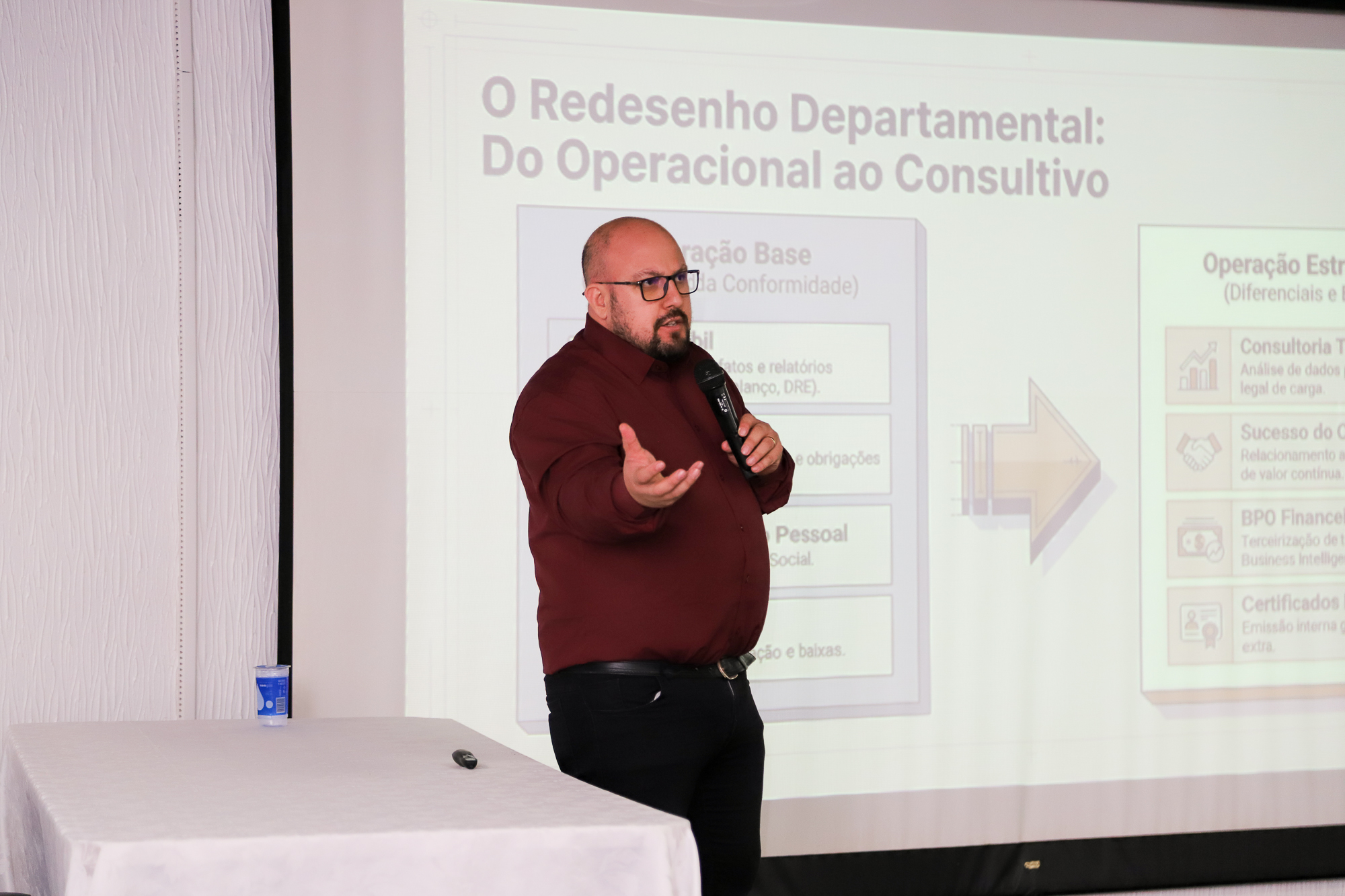 A abertura da Jornada contou com a palestra do professor Vanderlei Piala Moskviak, que abordou o tema “Reforma Tributária e o Novo Federalismo Fiscal: A Transição do ISS para o IBS e a Reconfiguração dos Poderes Municipais”, trazendo reflexões relevantes sobre um dos assuntos mais atuais e impactantes da área contábil. Na sequência, o profissional Christian Milek Blech apresentou aos acadêmicos uma visão prática sobre o funcionamento de um escritório contábil, aproximando os estudantes da realidade do dia a dia da profissão.