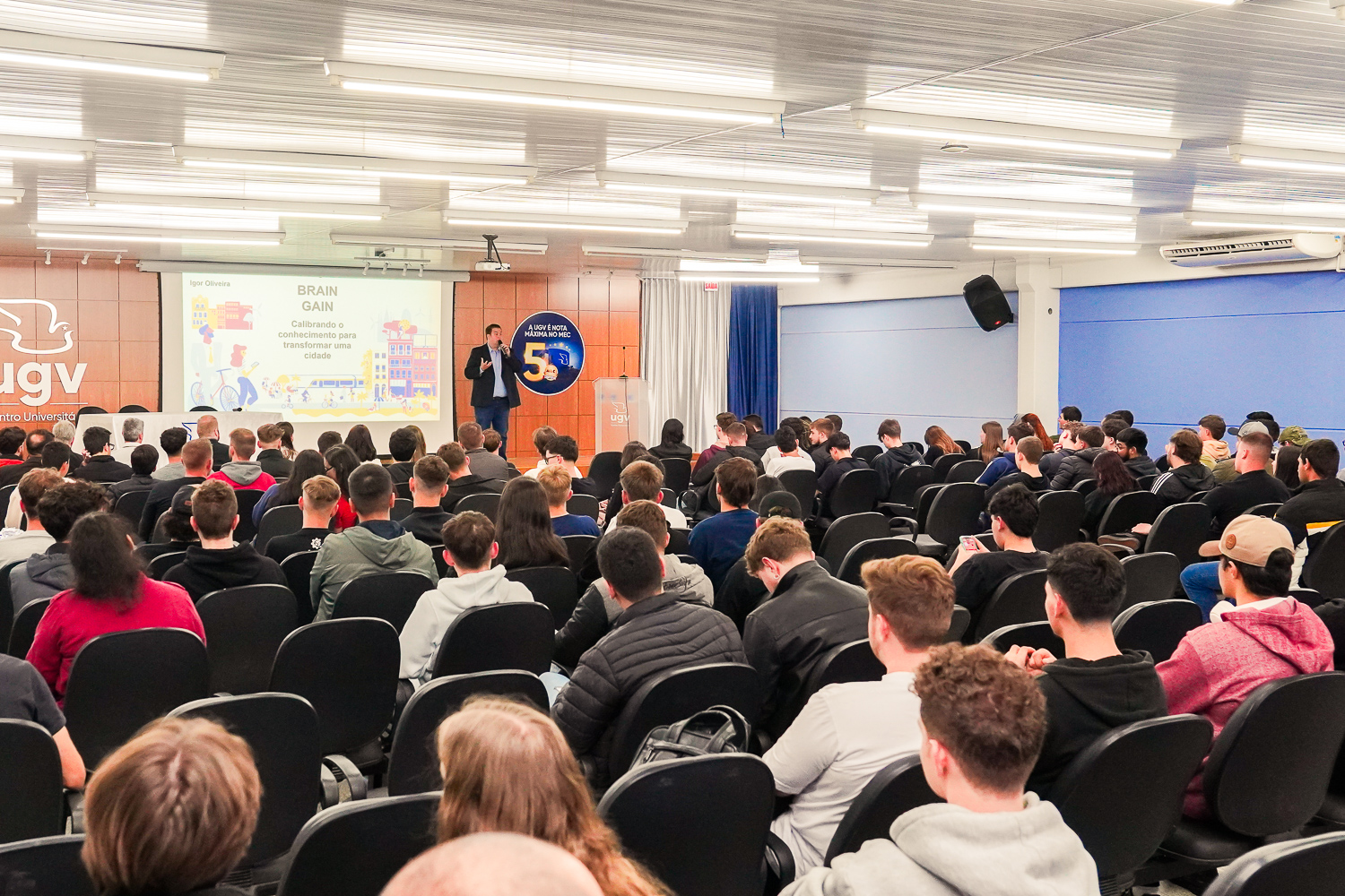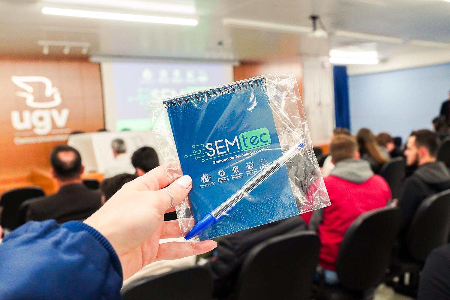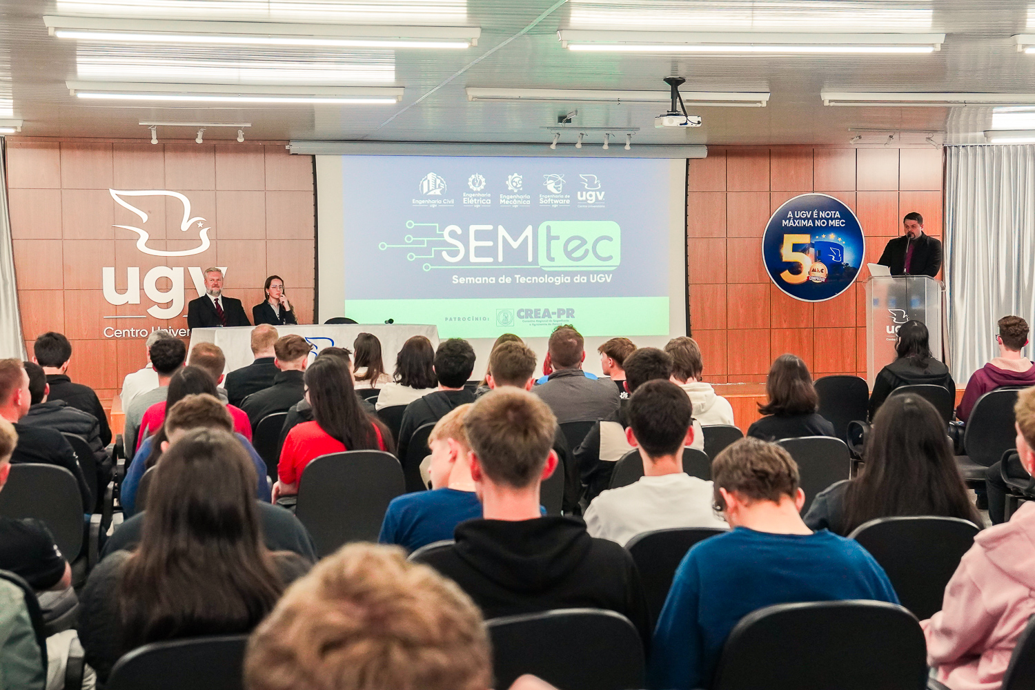 Entre os dias 20 e 23 de outubro, a UGV realizou mais uma edição da SEMTEC – Semana de Tecnologia, reunindo acadêmicos e professores dos cursos de Engenharia Civil, Elétrica, Mecânica e de Software em uma programação repleta de conhecimento, prática e inovação.