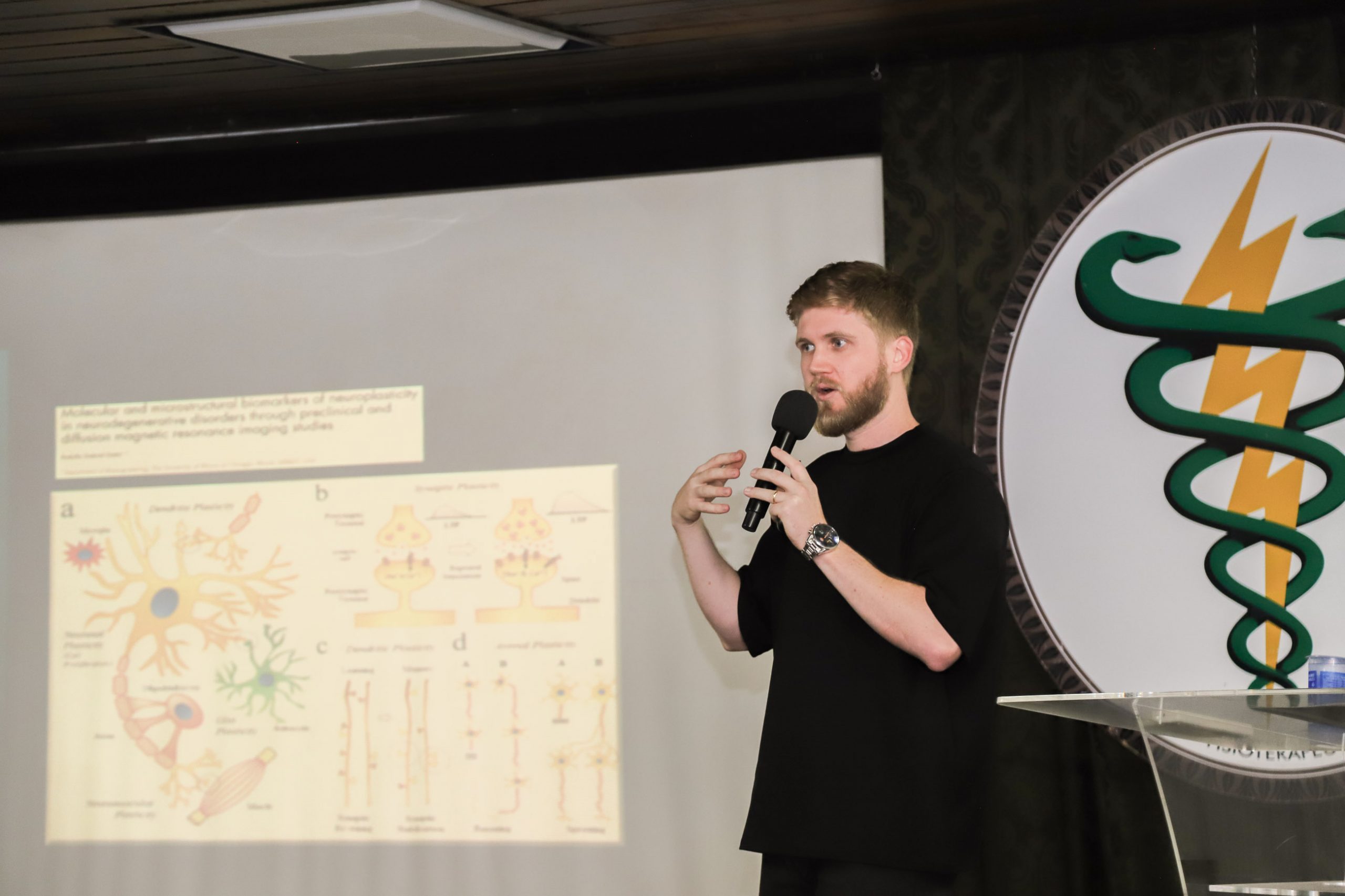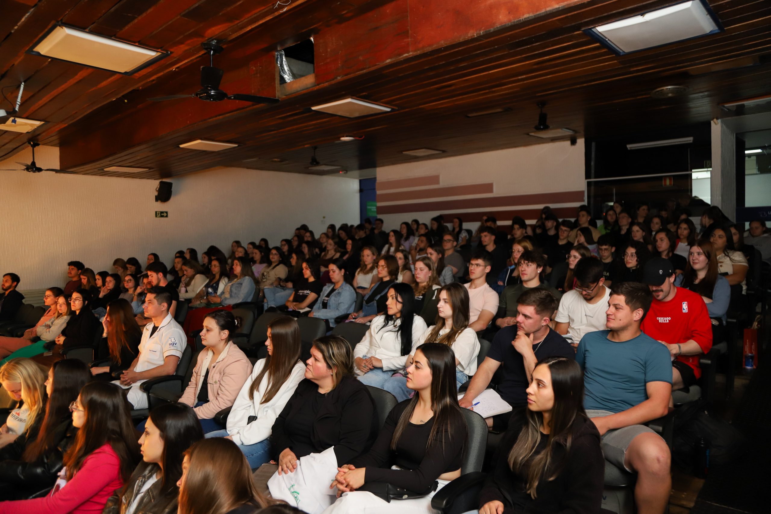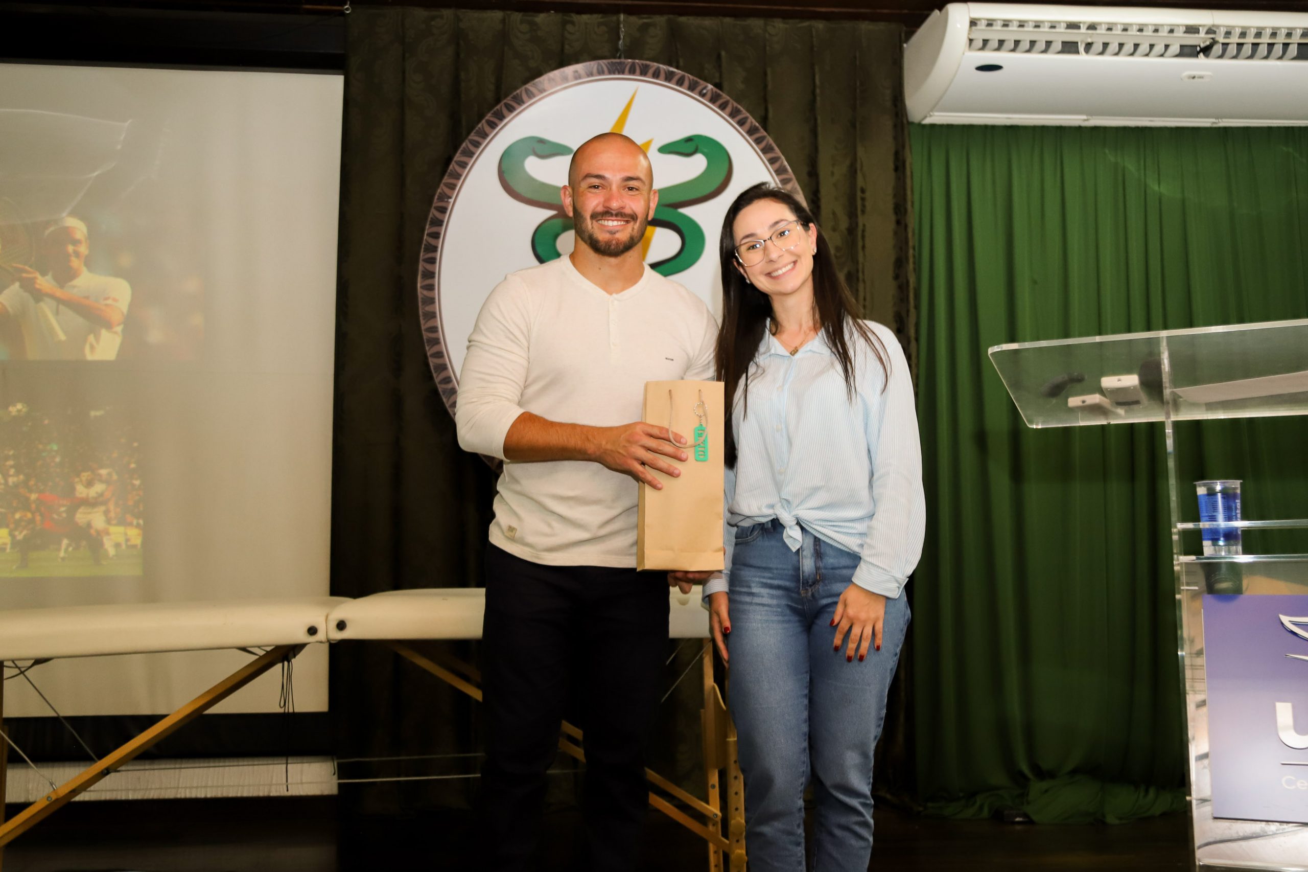 O encerramento da semana, realizado na quinta-feira no Auditório Prof. Dr. Wilson Ramos Filho, contou com a participação de Clécio Vier, que trouxe a palestra “Neurociência Aplicada ao Esporte: Como Aumentar o Desempenho Físico Treinando o Cérebro”. Doutor em Neurociências pela UFSC/Ohio University, fundador da Synaptos e da DescomplicaDOR, Clécio apresentou uma abordagem inovadora sobre o papel do cérebro na performance esportiva, destacando estratégias baseadas em evidências para potencializar os resultados por meio do treinamento neurológico. A noite também contou com uma prática que reforçou os conceitos abordados.