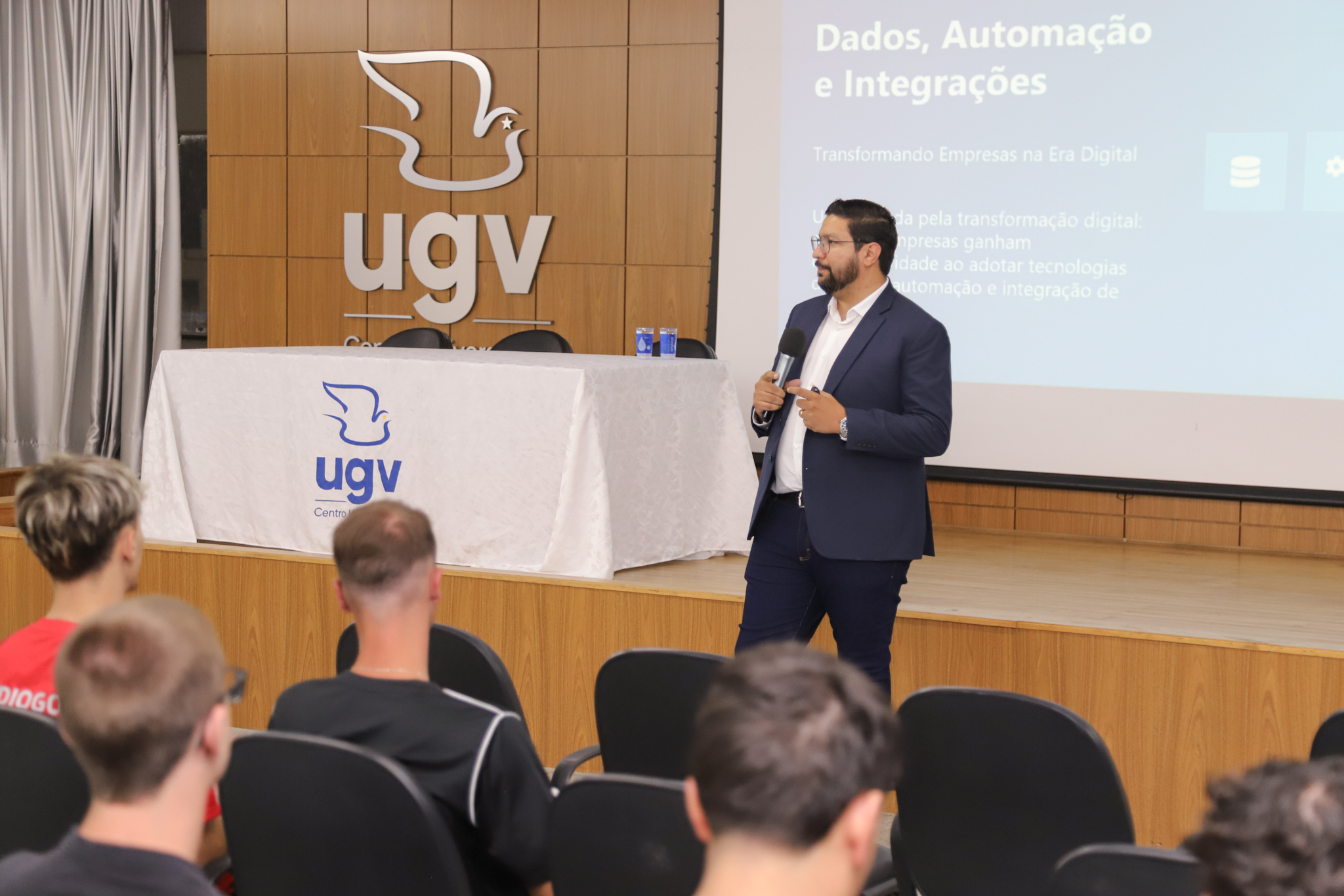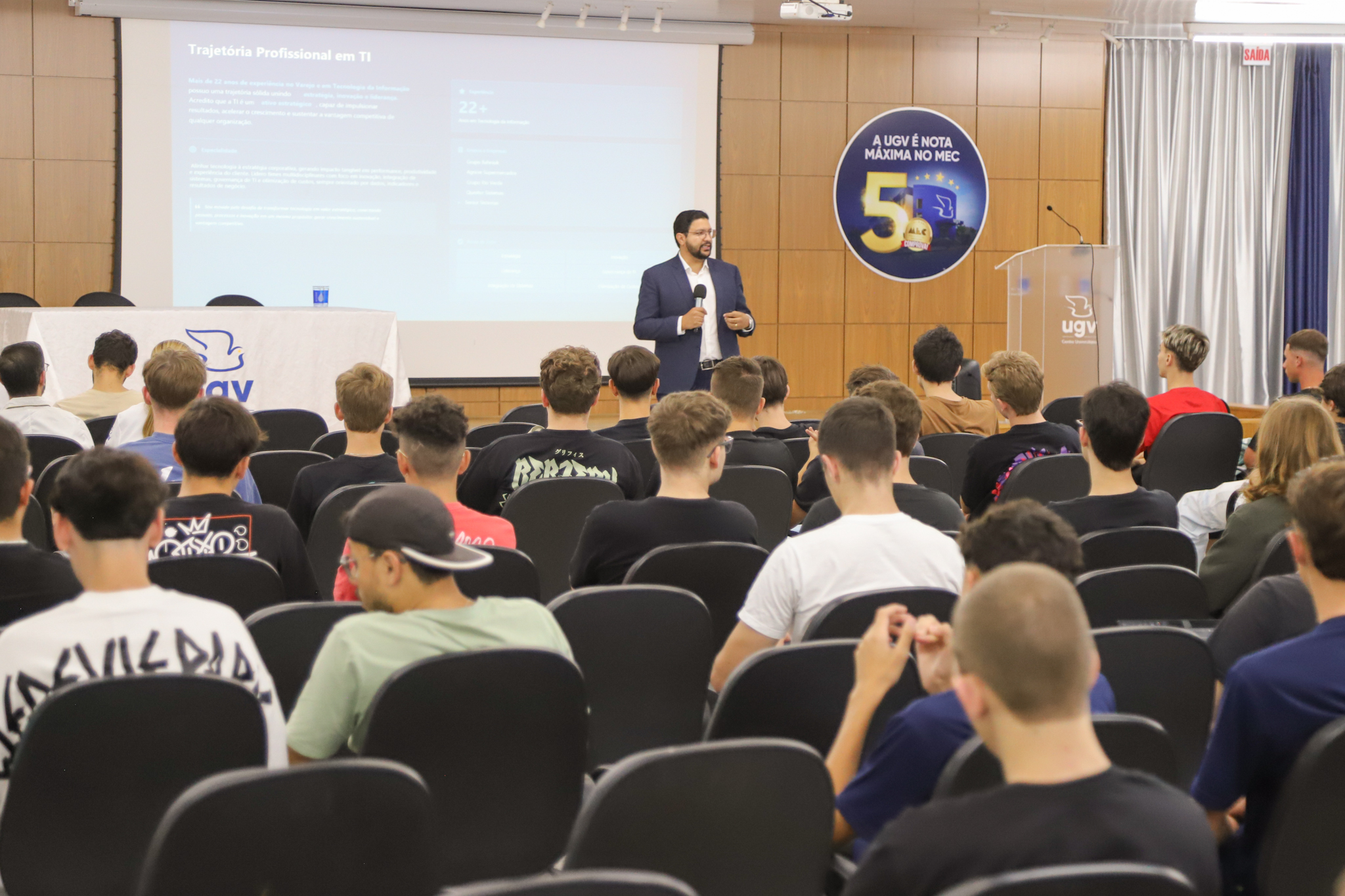Com foco em tecnologia e nas tendências que moldam o futuro da área, a UGV promoveu, na noite do dia 26 de fevereiro, a Aula Magna do curso de Engenharia de Software, marcando o início do semestre 2026/1. O encontro reuniu acadêmicos em um momento voltado à troca de experiências e à aproximação com a realidade do mercado de tecnologia.