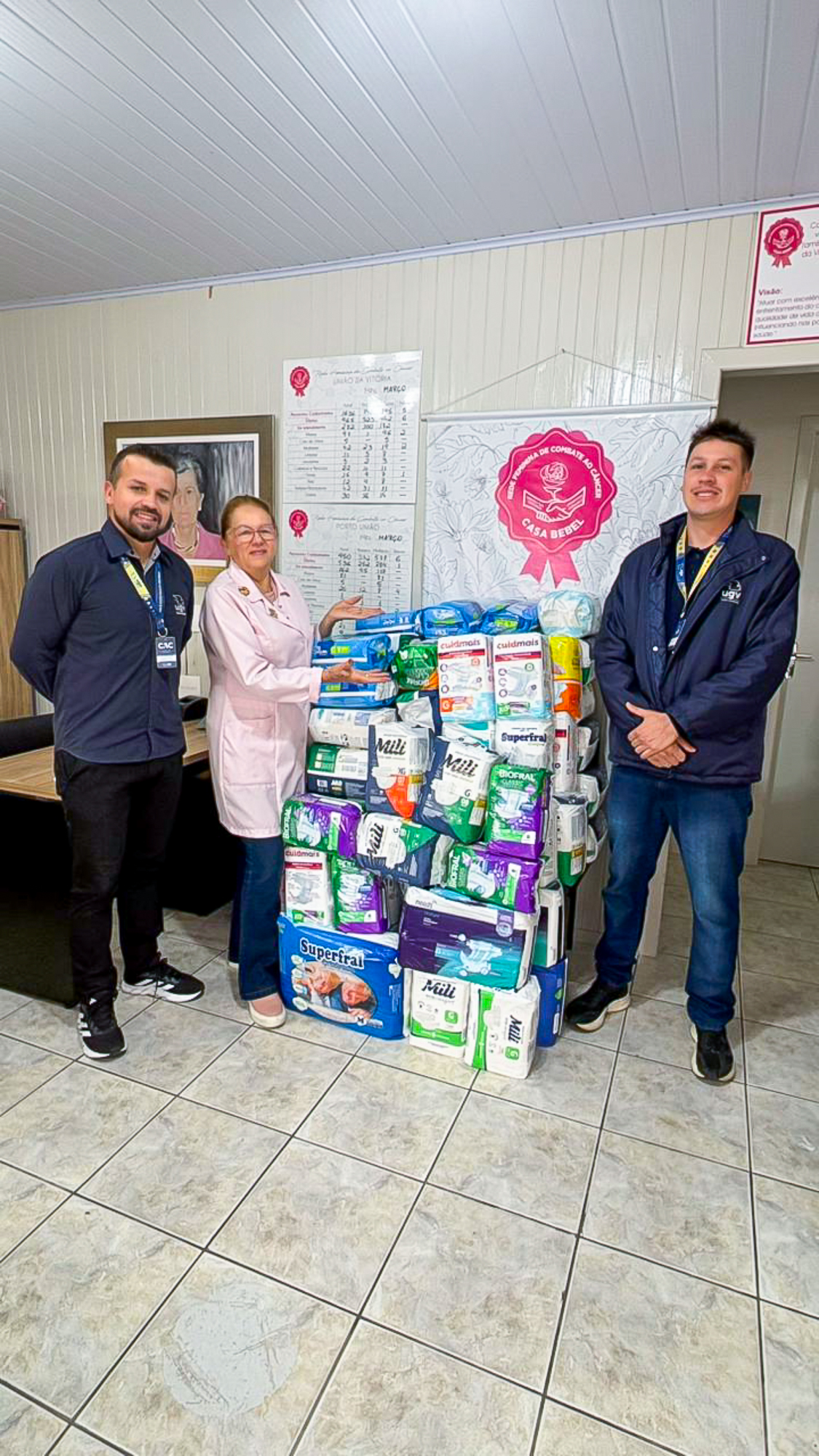 A solidariedade também integra a formação acadêmica na UGV – Centro Universitário. Em mais uma ação voltada ao compromisso social, a instituição realizou a doação de aproximadamente 1.000 fraldas geriátricas à Rede Feminina de Combate ao Câncer, contribuindo diretamente com o atendimento a pacientes oncológicos.