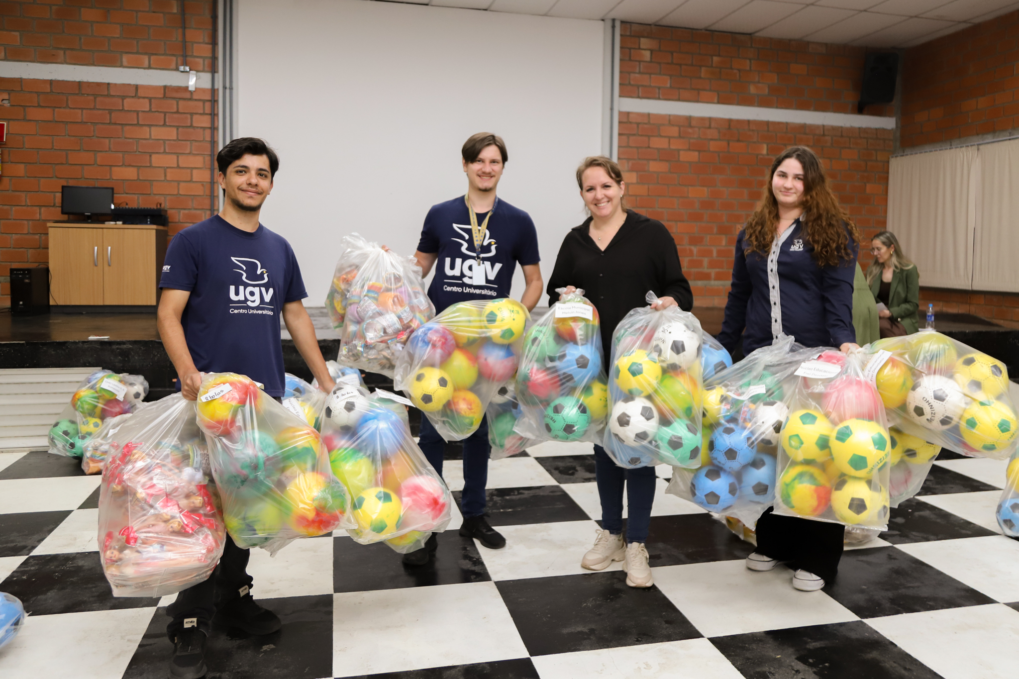 A UGV promoveu mais uma edição da Campanha Natal Solidário, iniciativa que mobiliza toda a comunidade acadêmica e reforça o compromisso da instituição com ações de impacto social. Durante várias semanas, estudantes, colaboradores e parceiros se uniram para arrecadar doações e recursos que possibilitaram a compra de cerca de 1.500 brinquedos, garantindo um Natal mais feliz para centenas de crianças.