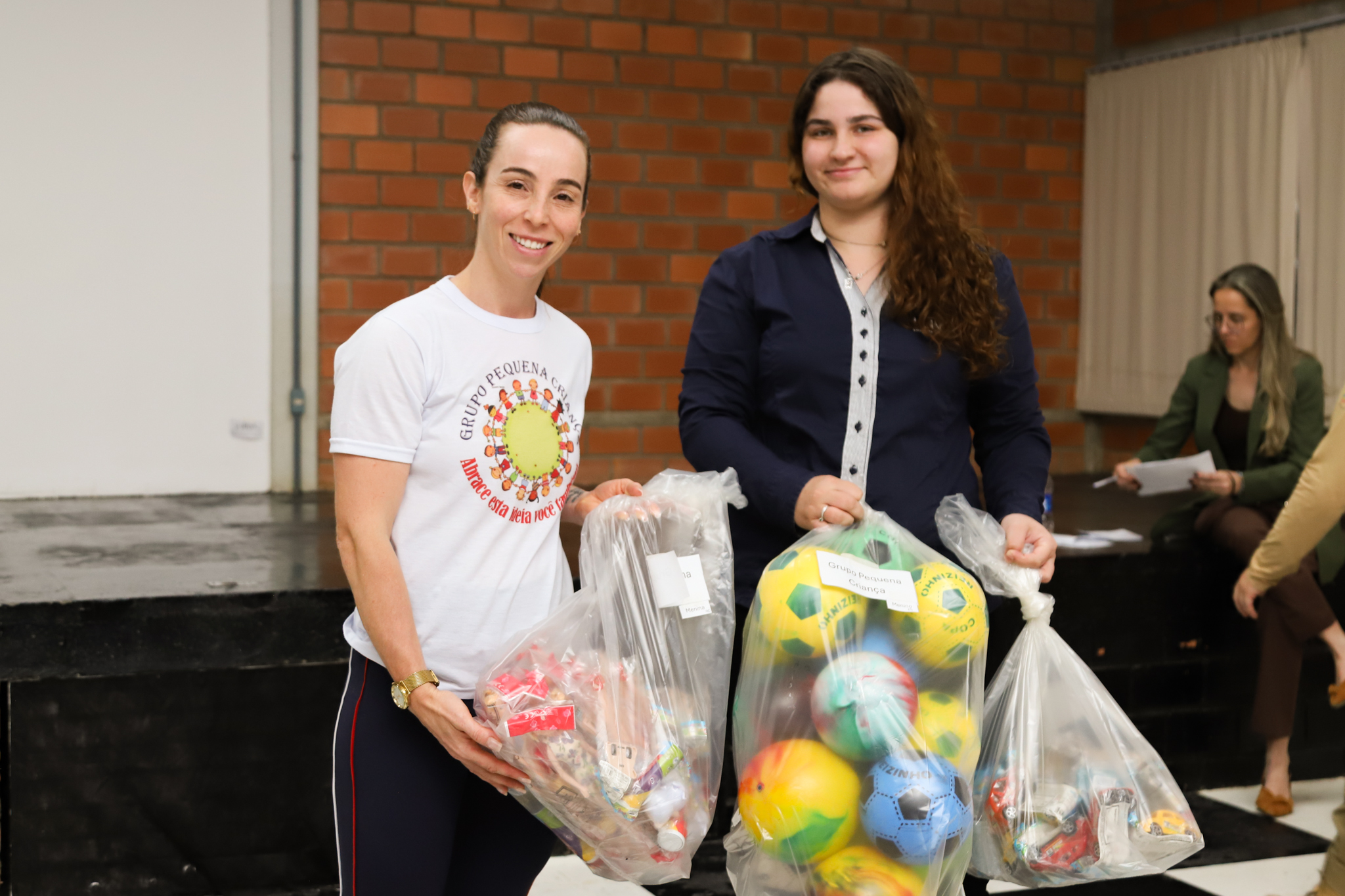 A entrega das doações foi realizada no dia 10 de dezembro, na própria UGV, e contou com a presença da pró-reitora acadêmica, Prof. Larissa Jagnez, que representou a instituição no momento da distribuição. As escolas, creches e entidades de União da Vitória, Porto União e Porto Vitória vieram até o campus para retirar os brinquedos. Foram contempladas:•Centro de Educação Infantil Lavínia D.R. Romanzini – União da Vitória